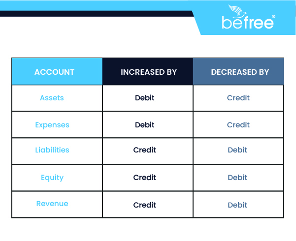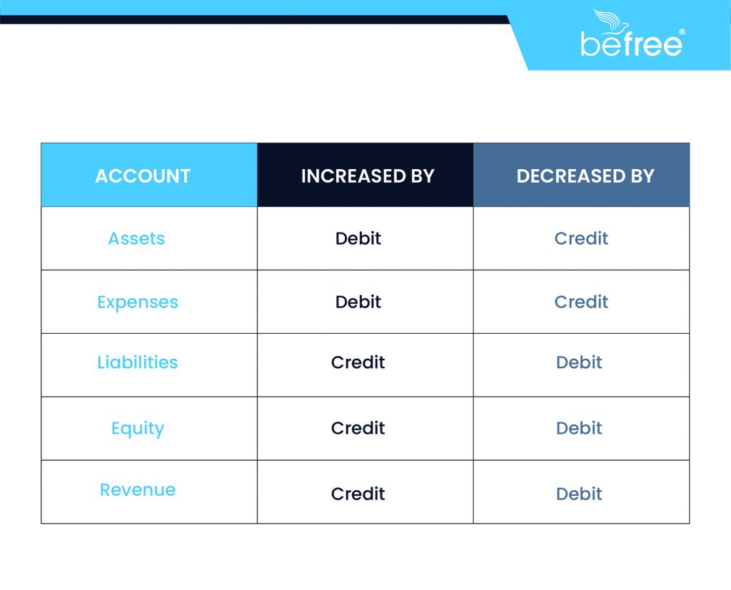 • Debit and Credit Rules: Assets and expenses increase with debits and decrease with credits. Liabilities, equity, and income increase with credits and decrease with debits.